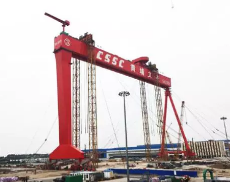 在吊裝預(yù)制構(gòu)件梁板時(shí)體現(xiàn)的工作原理為:利用導(dǎo)梁的滑輪小車將梁板沿橋縱向水平滑移到下一跨橋墩,運(yùn)用橋墩上的小型龍門吊配合另一端的小噸位吊車來共同抬吊架橋施工。
